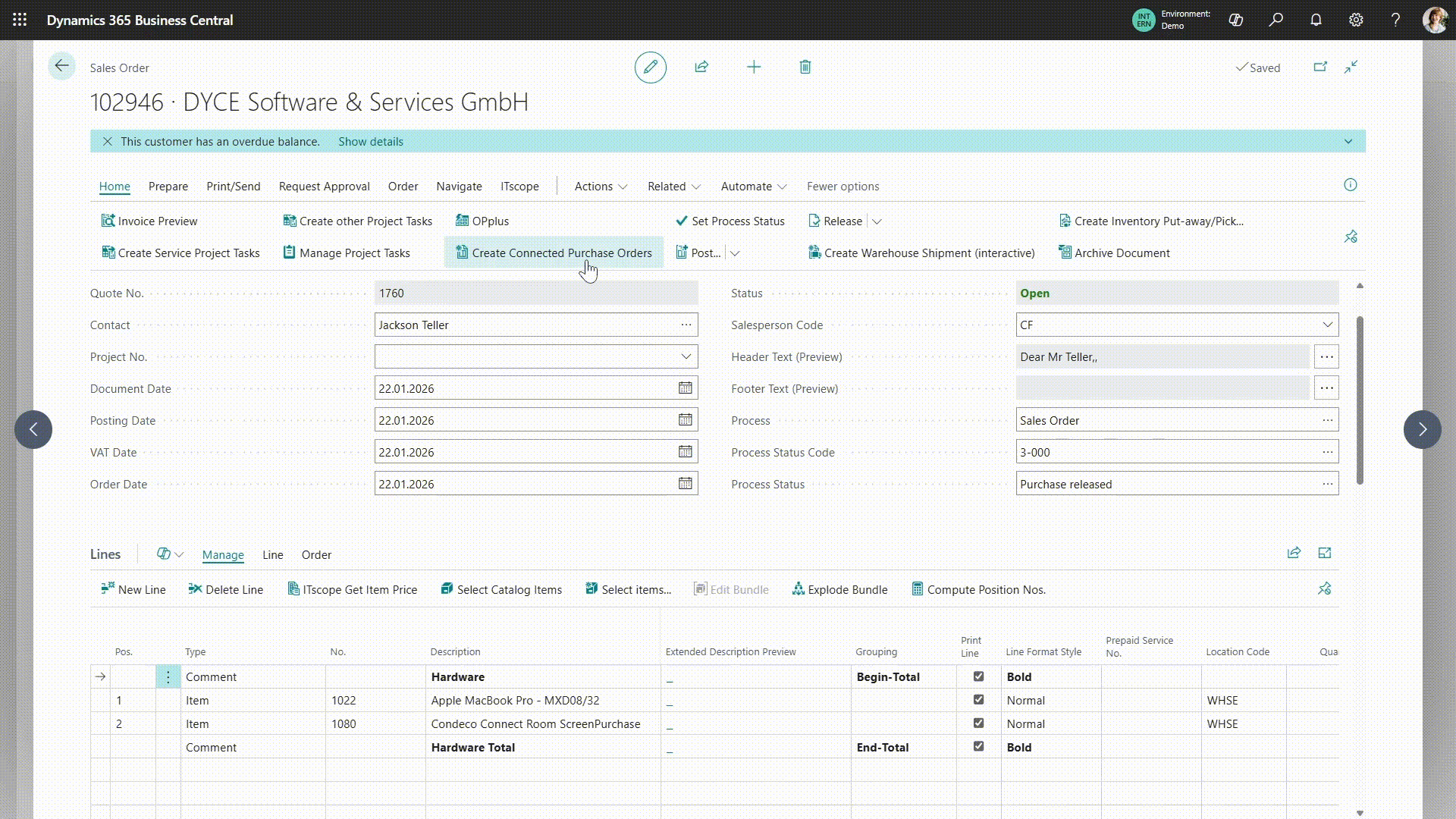 - Consistent processes: Order-related linking of sales and purchasing for smooth processes.